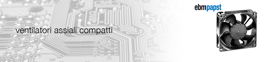 I ventilatori assiali compatti, sviluppano alte portate d'aria con medie prevalenze. Il flusso d'aria attraverso le pale del ventilatore è parallelo all'asse di rotazione. Ebm-papst offre una vasta selezione di ventilatori compatti in corrente continua e alternata – da 25mm a 280mm – con spessori ridotti grazie al sistema di motore integrato che riduce l'ingombro.